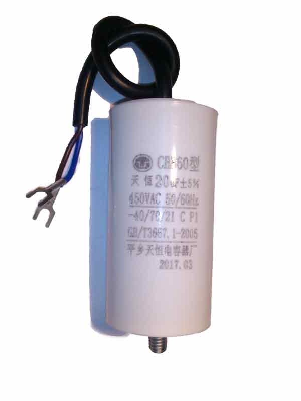 Конденсатор пусковой 20 мкФ 450 В CBB60 выводы с клеммами, с креплением 'винт'
