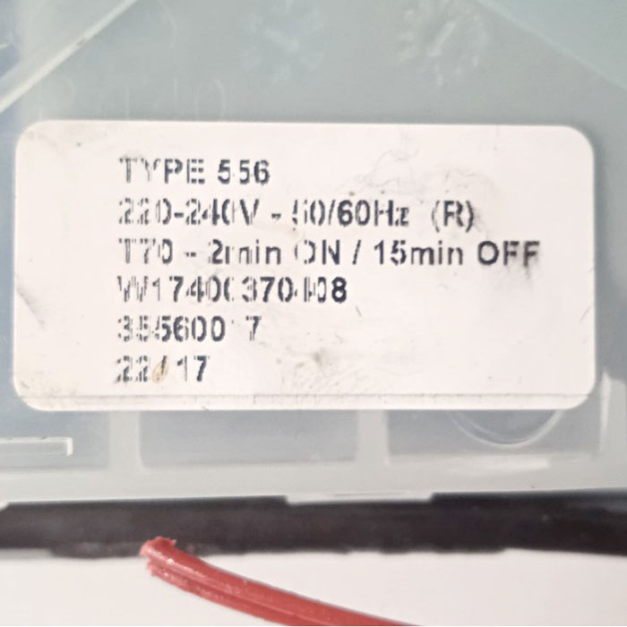 Надписи на детали: TYPE 556 220-240V - 50/60Hz (R) T70-2min ON/15min OFF