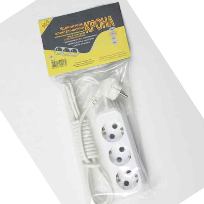 Удлинитель сетевой 2 гнезда 1,5м Крона