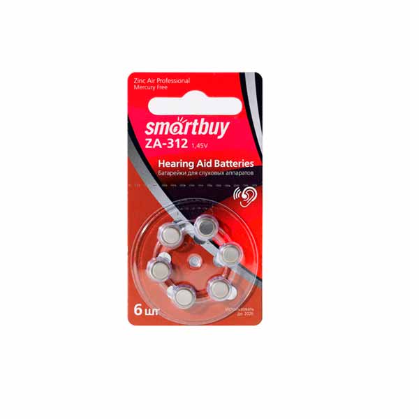 Батарейка для слуховых аппаратов A312-6B, Smartbuy