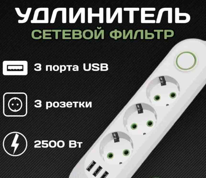 -Удлинитель сетевой 3 гнезда 3 с заземлением QL-1071U 2500W + 3 USB 5v/1А JETTБатарейки, аккумуляторыПровода, кабели, переходникиНакопители информацииКорпусные и установочные изделияСредства разработки, конструкторы, модулиКнопки, переключатели, разъёмы, релеОптоэлектроникаЭлектротехникаБлоки питания и зарядные устройстваОфисная техникаИзмерительные приборыПаяльное оборудование