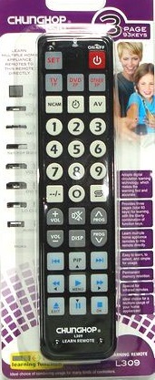 С помощью пульта CHUNGHOP RM-L309 можно управлять телевизором, DVD-плеером, видеомагнитофоном, ресивером, аудиосистемой - практически любой техникой, управляемой с помощью инфракрасного излучения, кроме кондиционера. Этим пультом Вы сможете управлять одним пультом 3 видами техники, что очень удобно.